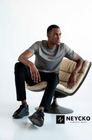 NEYCKO kleding is gemaakt van travelstoffen die uitsluitend bestaan uit polyamide en elastaan. Deze fijne stof past zich aan aan de vorm van je lichaam.