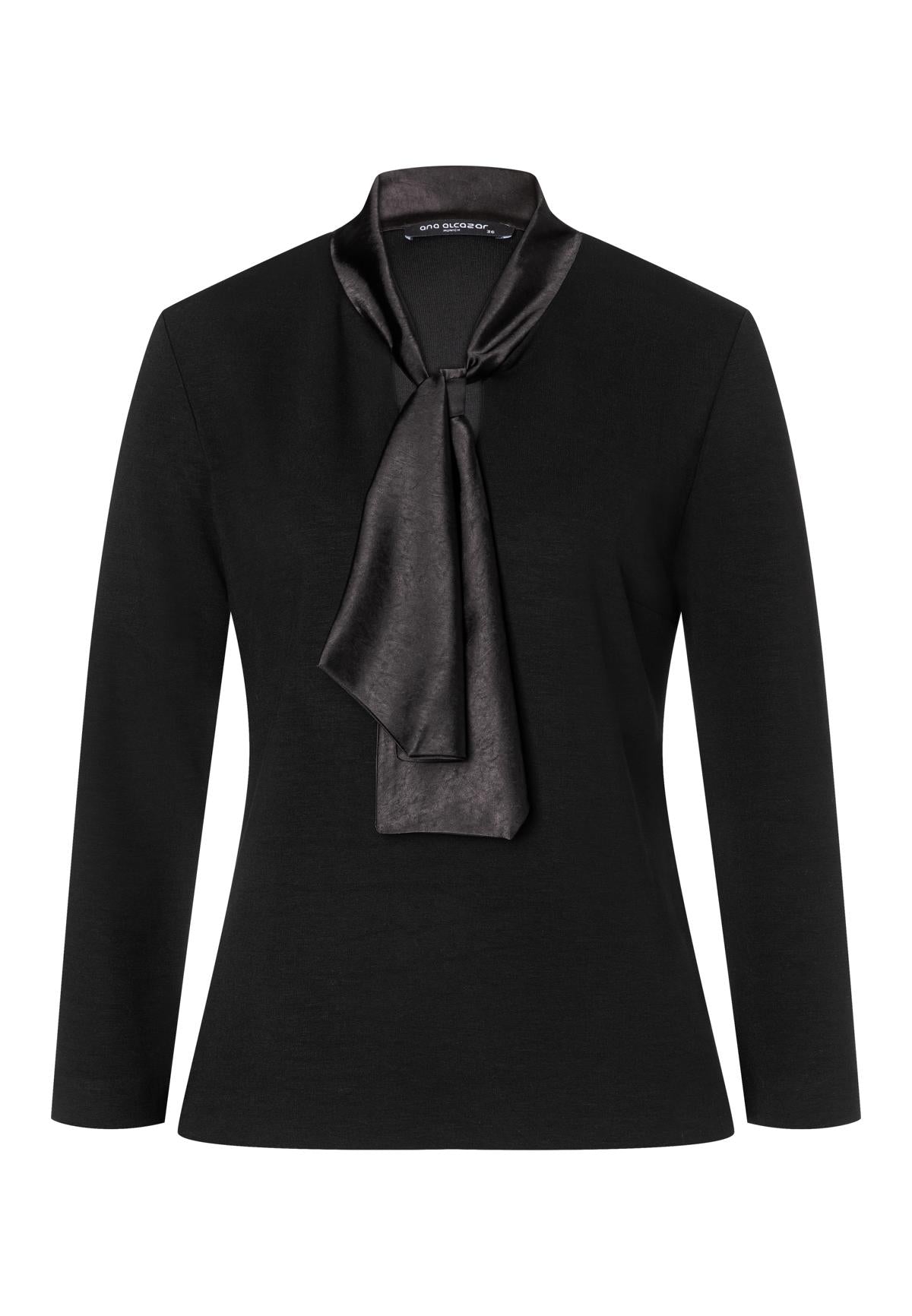 Blouse van Ana Alcazar straalt verfijning uit met een elegante, zwarte satijnen strik. De lange mouwen en subtiele pasvorm maken dit kledingstuk een veelzijdige keuze voor elke dag.