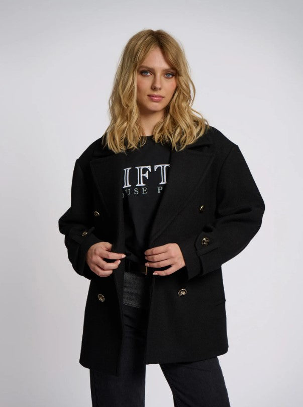 Jynte Coat van Fifth House is een elegante jas die opvalt door zijn minimalistische ontwerp en tijdloze grijze kleur. Deze veelzijdige jas heeft een ruime pasvorm en een klassieke dubbele rij knopen, perfect voor stijl en comfort in elk seizoen.