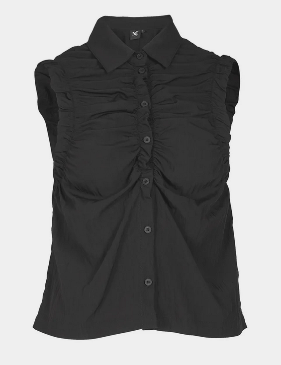 Adelia Top van NU-Denmark komt in een stijlvol zwart en heeft een flatterende getailleerde pasvorm met verfijnde ruches. Deze top, gemaakt voor comfort en elegantie, combineert moeiteloos met elke garderobe en voelt zacht aan op de huid.