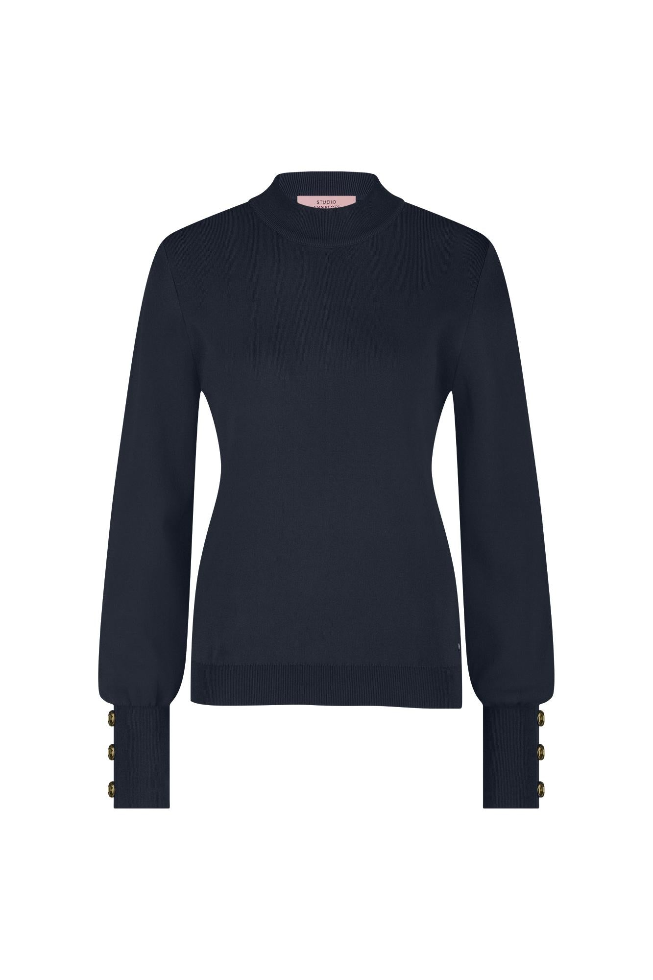 De Luna col pullover van Studio Anneloes is een stijlvolle trui in een diepblauwe kleur. Het heeft een klassieke pasvorm met subtiele details zoals knoopjes op de mouwen. Perfect voor een casual dag of een chic avondje uit.