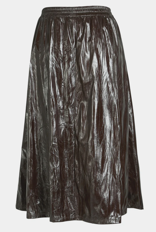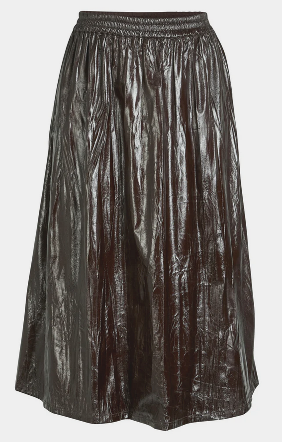 De Athea Skirt van NU-Denmark straalt met zijn opvallende glanzende bruine look. Deze rok valt soepel en comfortabel, perfect voor elke dag. De elastische tailleband zorgt voor een relaxte pasvorm en makkelijke styling. Combineer moeiteloos met een blouse voor een chique uitstraling.