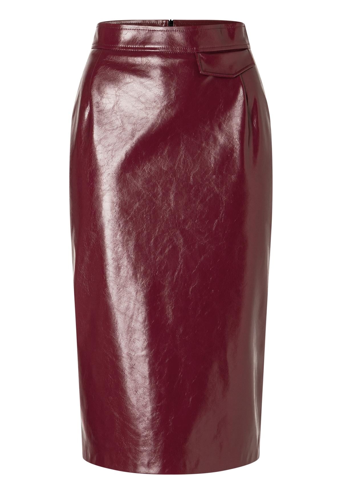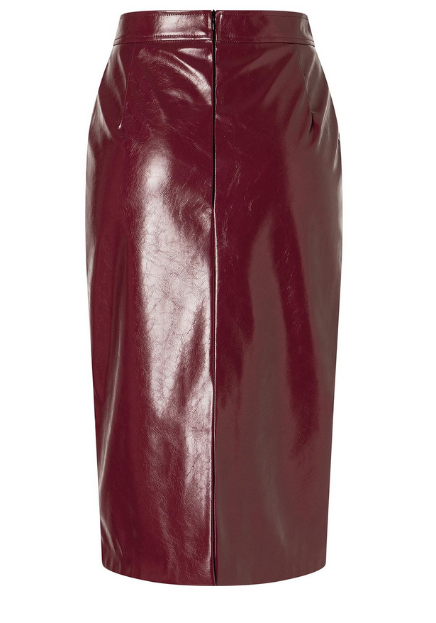 Koker Rok Acusi rood van Ana Alcazar straalt elegantie uit met zijn glanzende, rode kleur en strakke pasvorm. Deze rok uit de jurkencollectie valt net over de knie en is perfect voor een zelfverzekerde uitstraling.