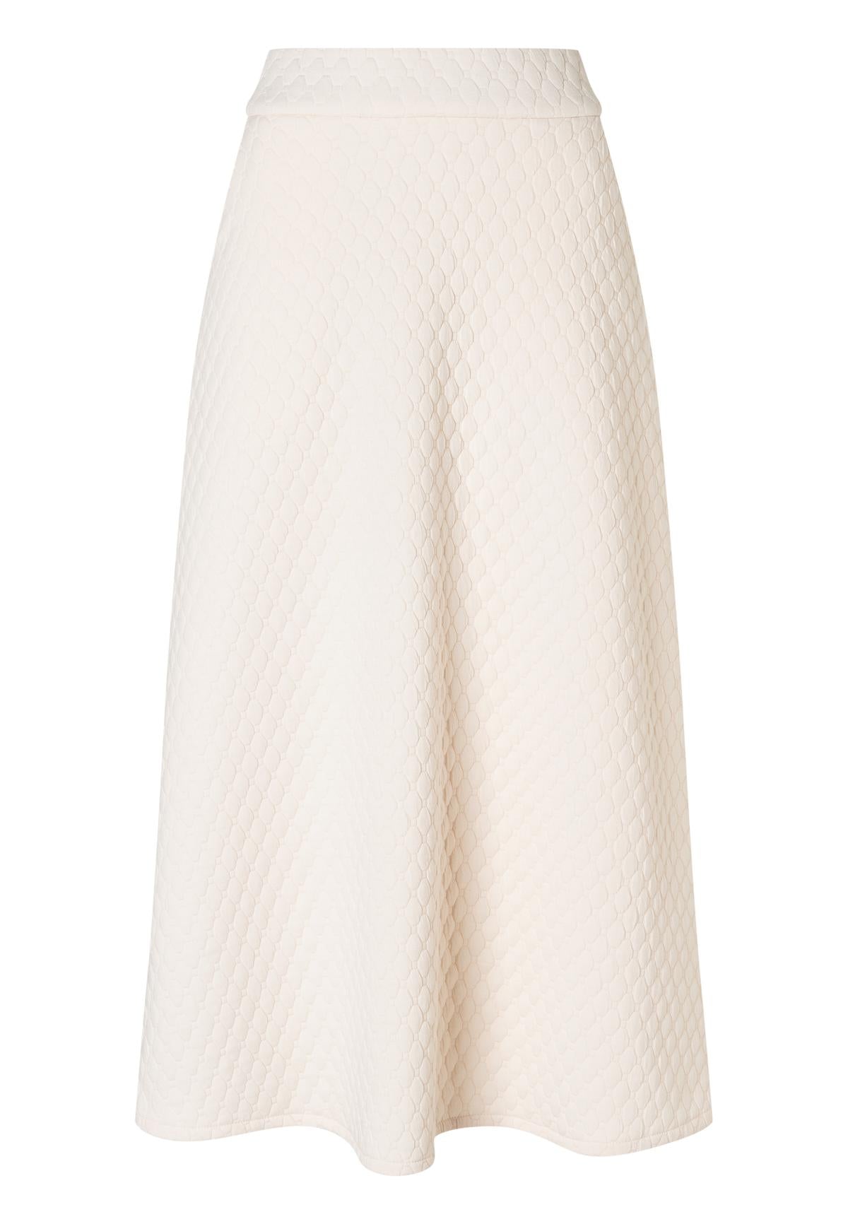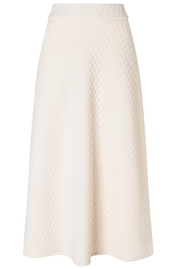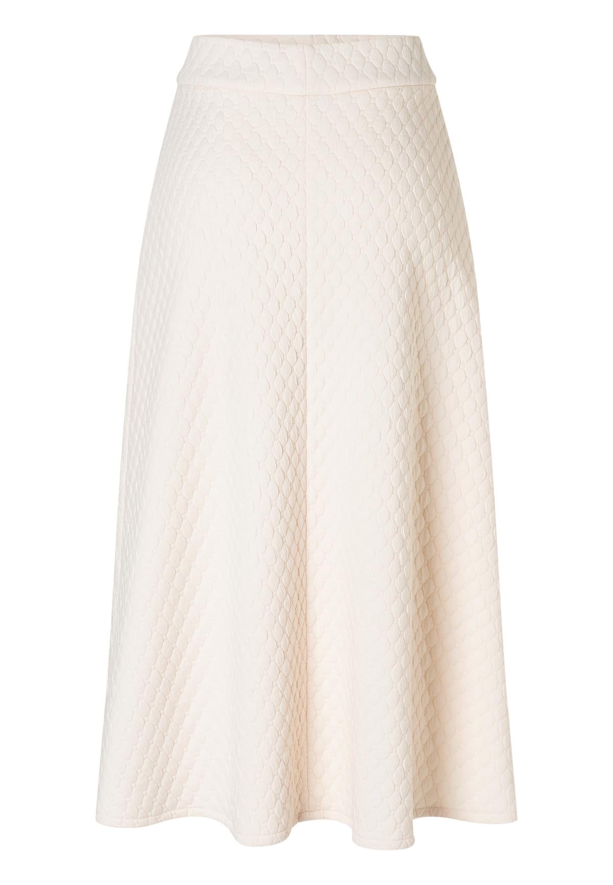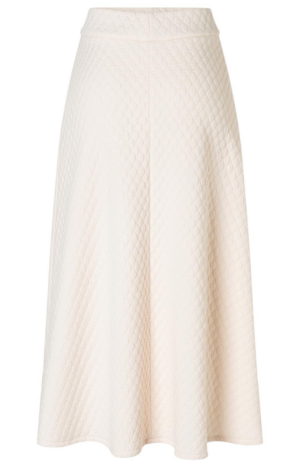 De Skirt Midi White Adlora van Ana Alcazar straalt elegantie uit met haar subtiele patroon op een prachtige witte achtergrond. De rok heeft een flatterende midi-lengte, perfect voor diverse gelegenheden.