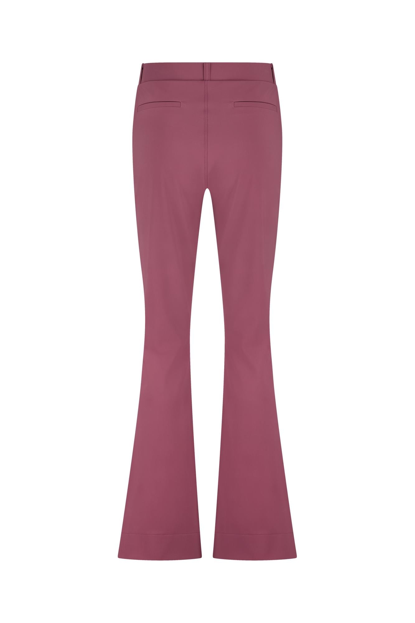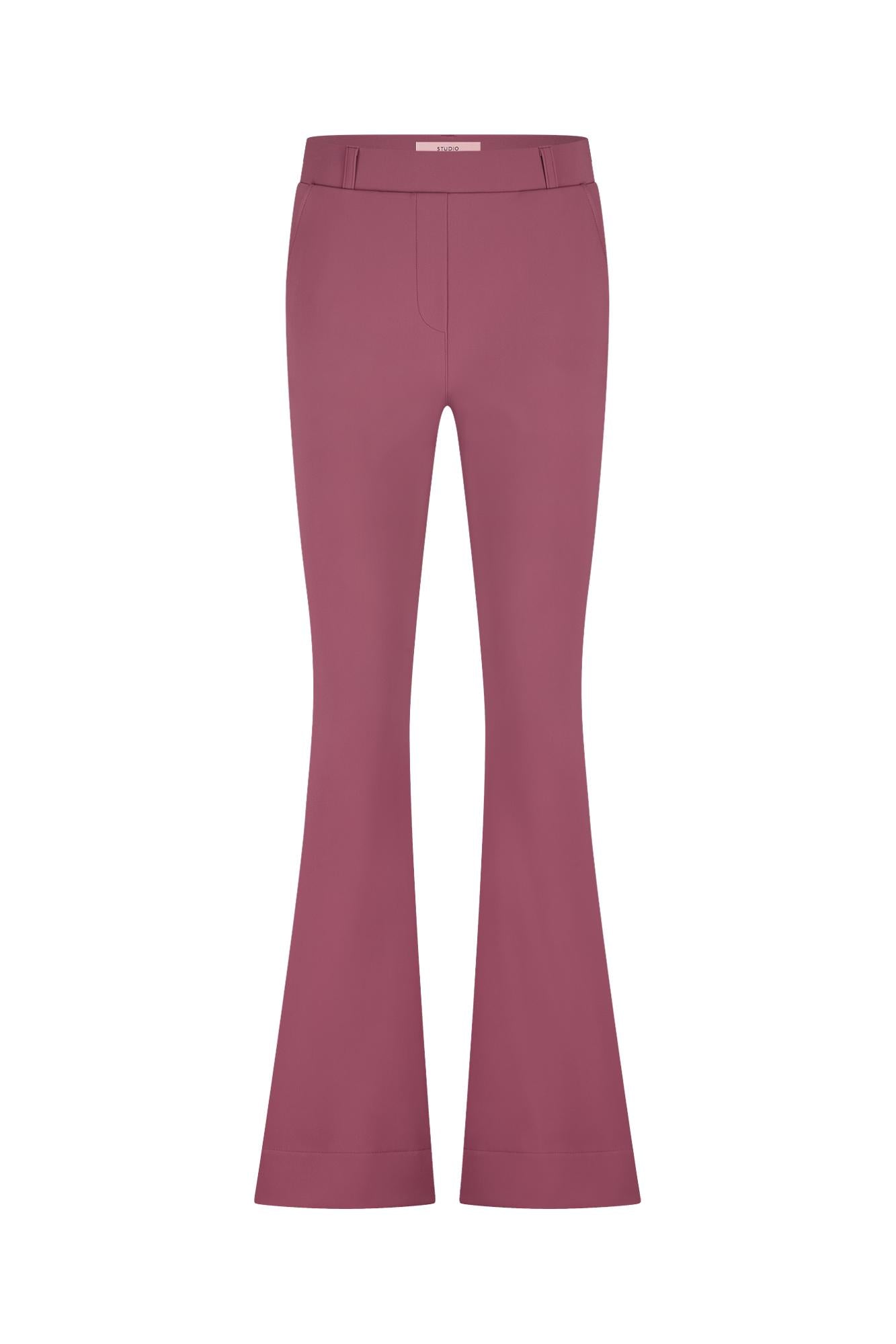 Flair bonded trousers van Studio Anneloes is een broek met flared pasvorm in effen oudroze. De gladde stof valt soepel langs je benen en loopt wijd uit. Voorzien van riemlussen en een strakke, nette voorkant; geen dessin of logoprint. Een clean kledingstuk dat je lengte benadrukt.