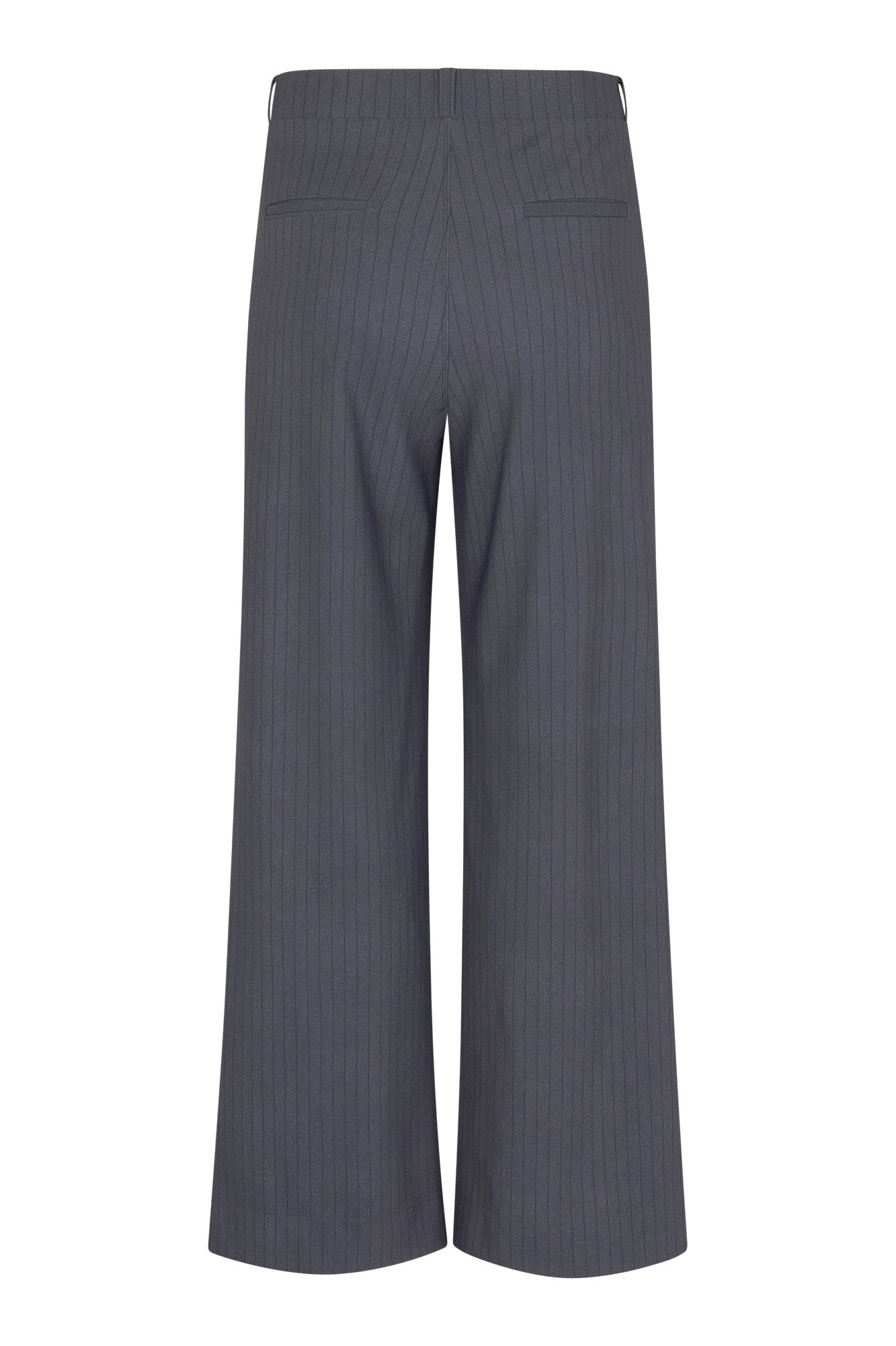 Lexie bnd pinstripe trousers van Studio Anneloes is een donkergrijze pantalon met subtiele pinstripe en rechte, wijde pijpen. De tailleband is glad met riemlussen; de voorkant oogt clean zonder zichtbare sluiting. Het verticale dessin geeft een gestroomlijnd beeld.