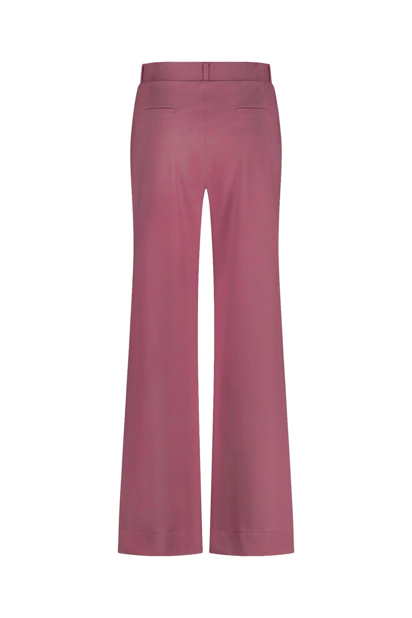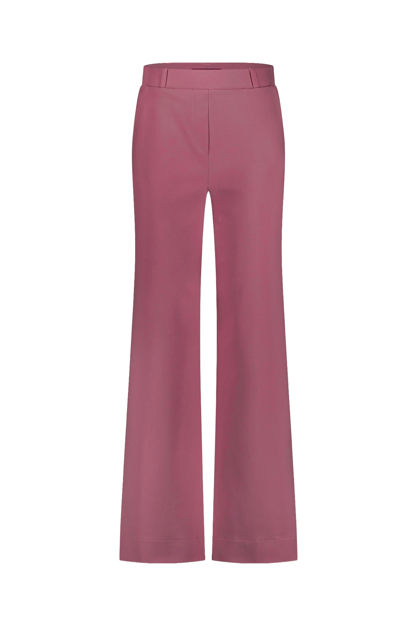 Lexie bonded trousers van Studio Anneloes is een broek met wijd uitlopende pijpen. De effen oudroze kleur springt eruit. De pasvorm sluit licht aan in de taille en valt losser langs het been. De tailleband met riemlussen geeft een nette finish. Dit kledingstuk heeft een clean front en geen dessin.
