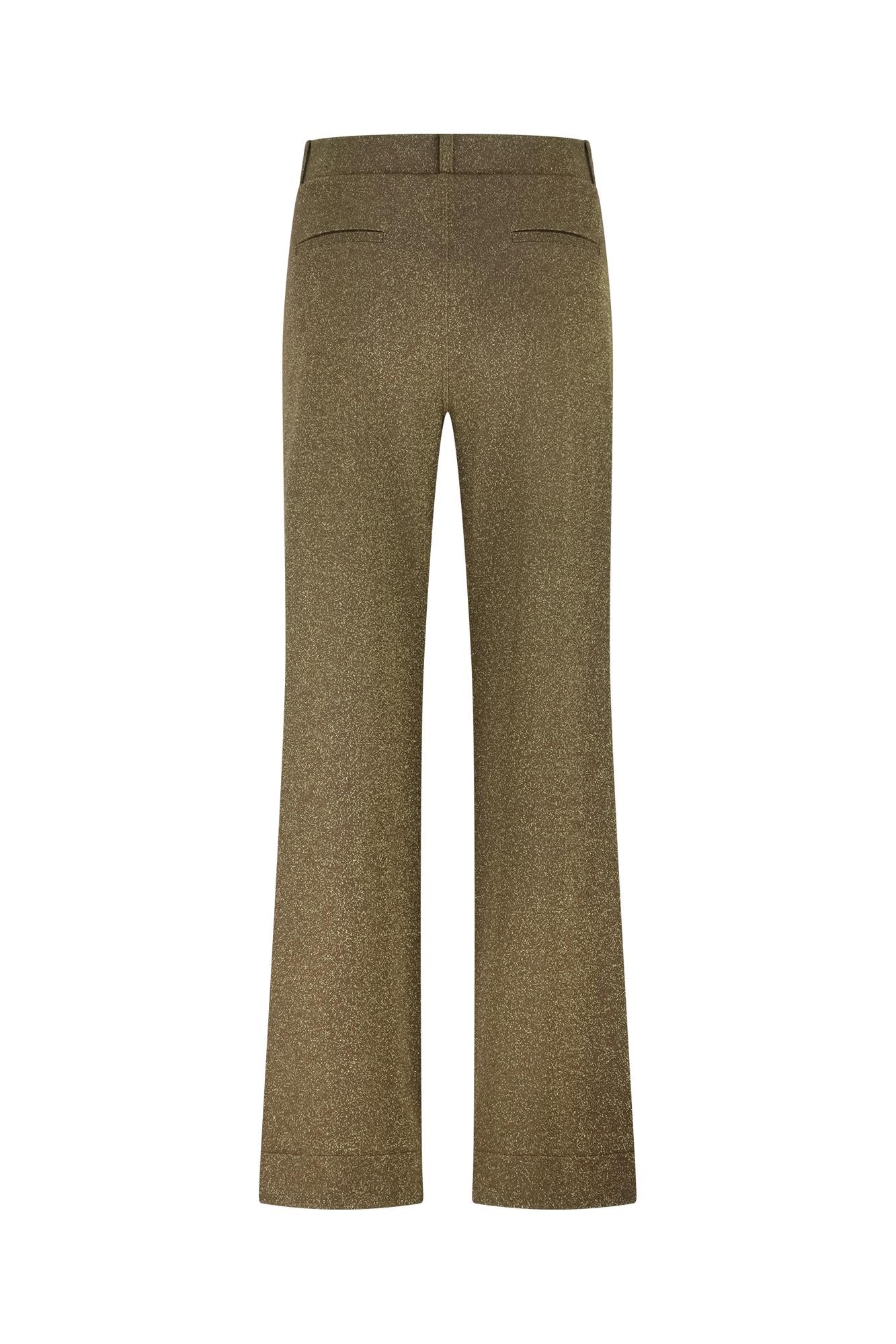 Lexie sparkle trousers van Studio Anneloes is een broek met subtiel uitlopende pijpen en een comfortabele tailleband met riemlusjes. De olijfgroene kleur heeft een fijne glitter die het kledingstuk laat sprankelen zonder te overdrijven.