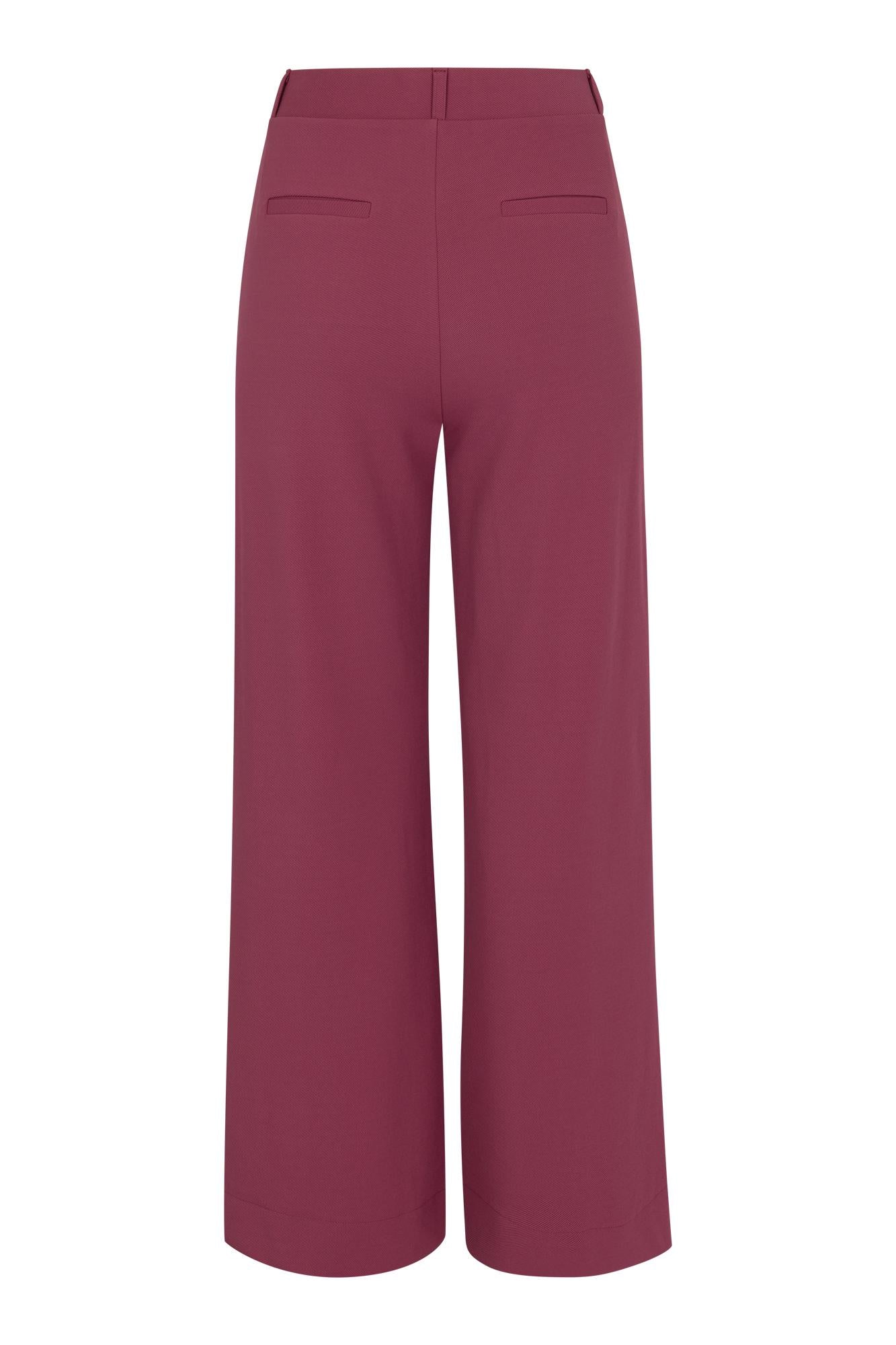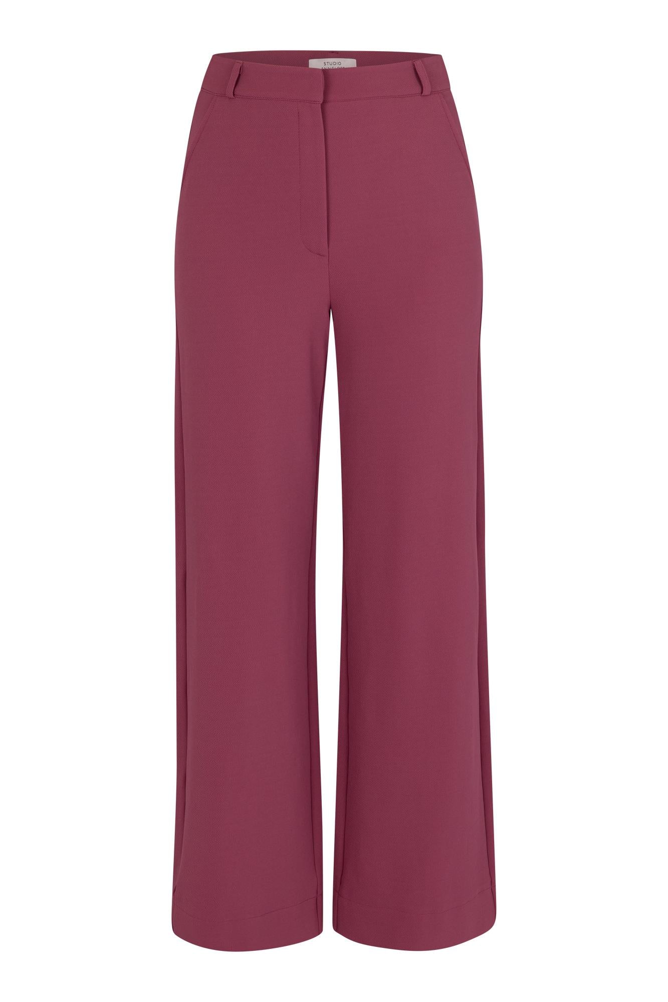 Luz twill trousers van Studio Anneloes is een broek met wijde pijpen in bordeauxrood twill. Rechtvallende, soepele pasvorm, met riemlussen en een verborgen sluiting. Effen kleur zonder dessin: het kledingstuk oogt rustig en modern.