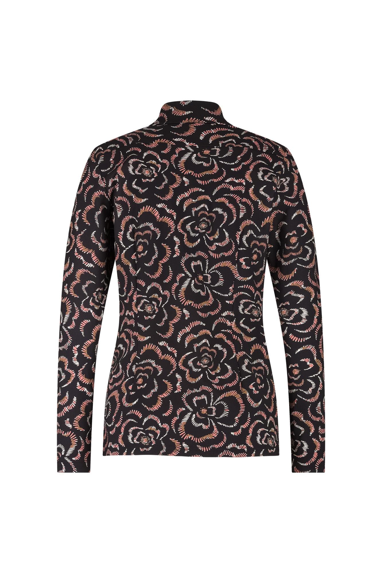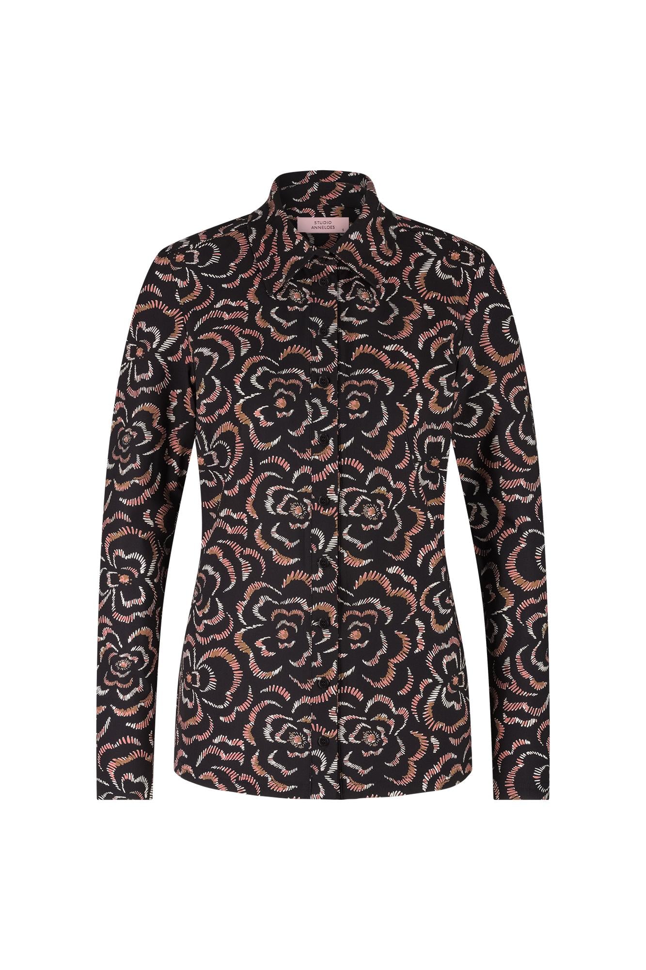 Poppy marker shirt van Studio Anneloes is een getailleerd shirt met lange mouwen, in zwart met een all-over bloemendessin in roze en ecru. Het kledingstuk heeft een klassieke kraag en doorknoopsluiting; de print lijkt getekend in korte strepen en geeft je look een speels effect.