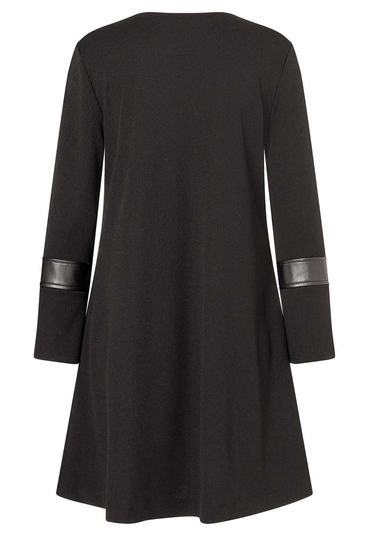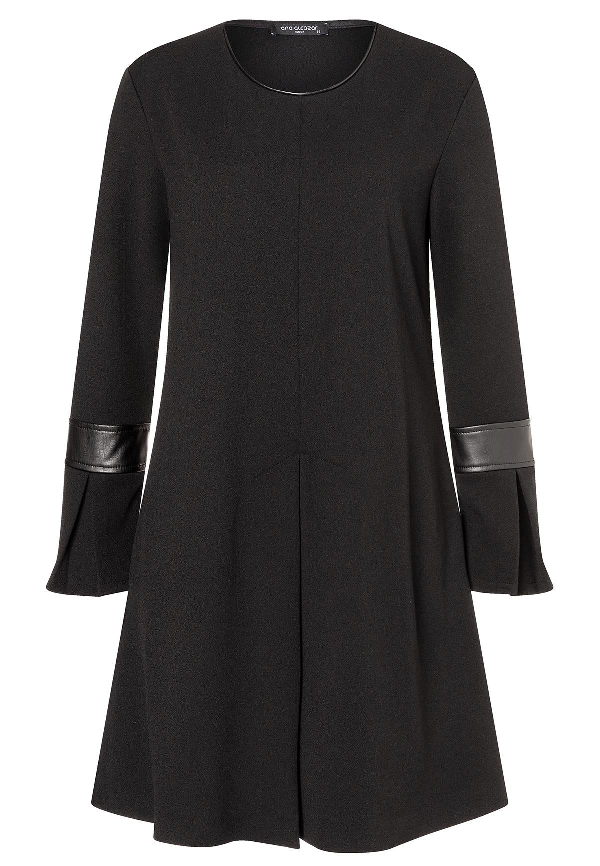 041651-3765-001 Kleid von Ana Alcazar bietet eine lässige Passform und überzeugt mit seinem minimalistischen Design. Der schlichte schwarze Farbton wird durch elegante Lederdetails an den Ärmeln akzentuiert.
