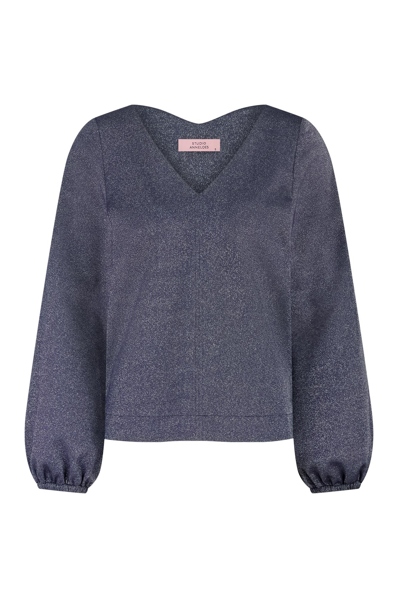 Meet the Claudina Sparkle Top by Studio Anneloes. This navy wonder shines with its subtle shimmer, making it a must-have in your wardrobe. The relaxed fit and long sleeves offer comfort, while the V-neck adds a touch of elegance. It's perfect for those who love a bit of sparkle without overdoing it.