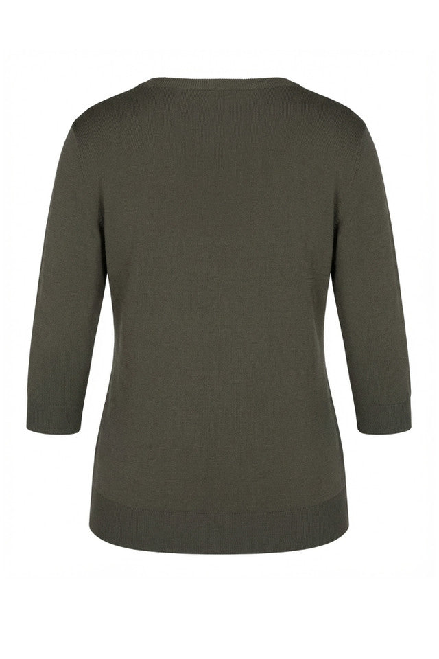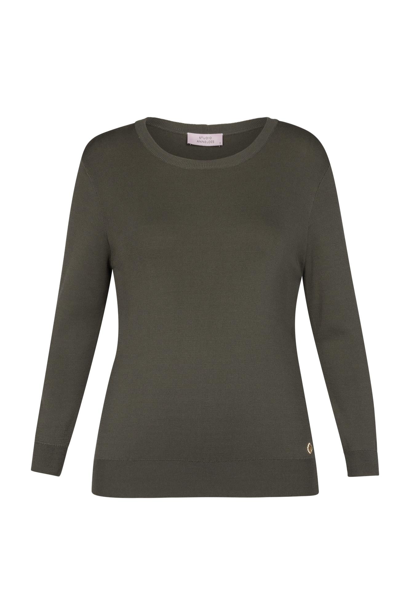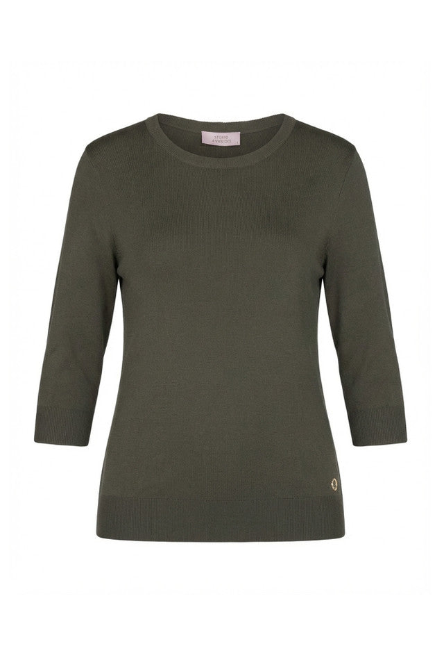 Luna 3/4 Sleeve Pullover by Studio Anneloes offers a cozy fit with its elegant design. Crafted in a rich forest green hue, this sweater features a subtle textured pattern. Its relaxed fit ensures comfort throughout the day and the 3/4 sleeves add a stylish touch.