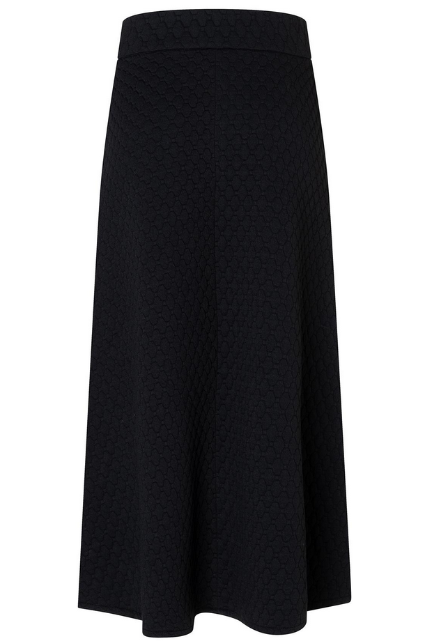 Skirt Midi Black Aldura by Ana Alcazar offers a chic balance of elegance and comfort. Crafted with a flattering A-line fit, this black skirt features a subtle textured pattern, perfect for a sophisticated look. The soft fabric gracefully falls to a midi length, making it a versatile addition to any wardrobe.