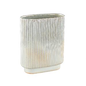 Eviera shiny glazed ceramic pot ribbed oval valt op door het glanzende glazuur en de strakke, verticale ribbelstructuur. De ovale vorm oogt modern; de kleur is parelgrijs met een zachte zandgloed. Dit Living item is keramiek en staat stevig dankzij de brede basis.