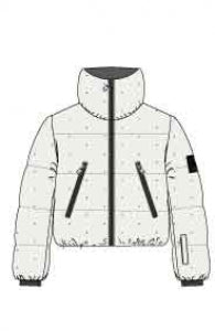 Gumeko Ski Jacket van Nikkie is een kort jasje met regular fit in helder wit. Het gewatteerde ontwerp met horizontale stiksels en subtiele stipprint oogt sportief. Voorzien van hoge kraag, zwarte rits, twee schuine ritszakken en een mouwzak met rits. Elastische boorden en zoom geven comfort en warmte.