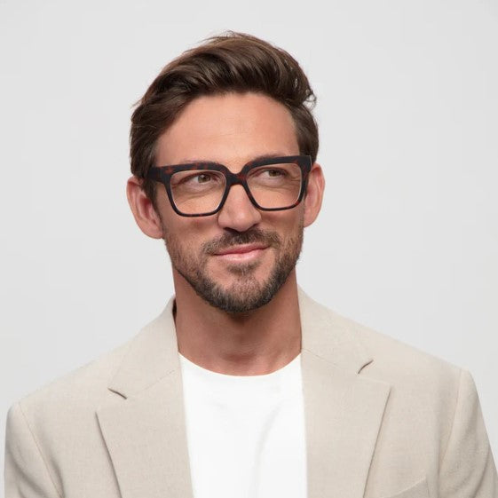 LL24 MAX TURTLE van Looplabb is een moderne bril met royaal, vierkant montuur. De kleur is diepzwart, met stevige, brede randen die je gezicht strak omlijsten. Het montuur heeft zachte hoeken voor een comfortabele look. Naam: LL24 MAX TURTLE. Soort product: bril.