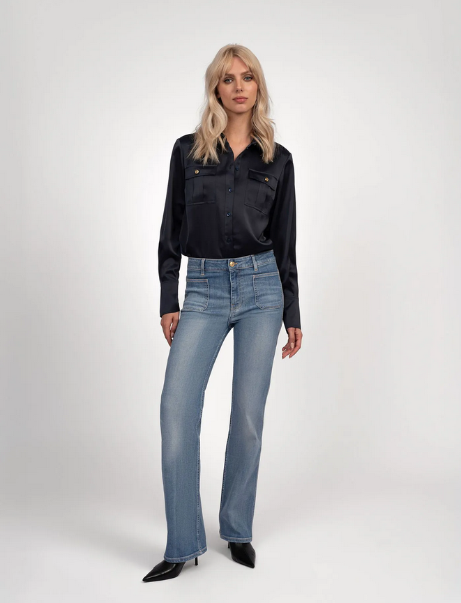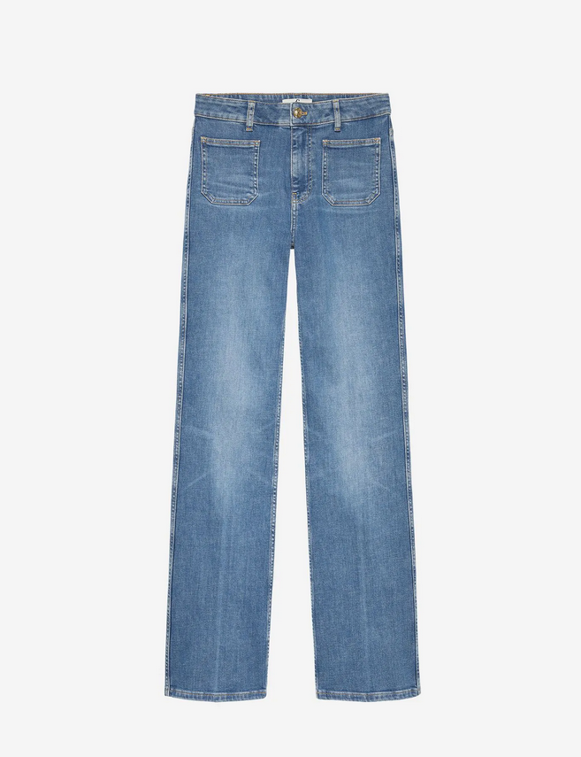 Mollie Jeans van Fifth House is een broek met hoge taille en rechte pijpen. Twee opgestikte voorzakken, gulp met knoop en zonder dessin. De pasvorm is recht en ontspannen; het kledingstuk oogt strak in een effen kleur.